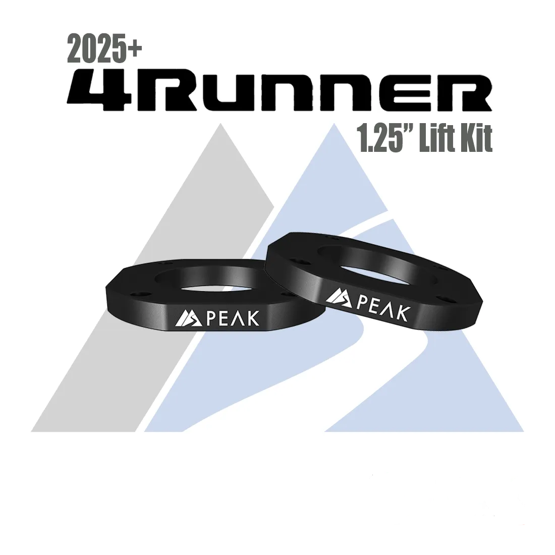 Introducing our 2025+ Toyota 4Runner – 1.25″ Lift” Kit. This kit features our top mount spacer to provide the lift you desire without sacrificing the performance of your shocks.