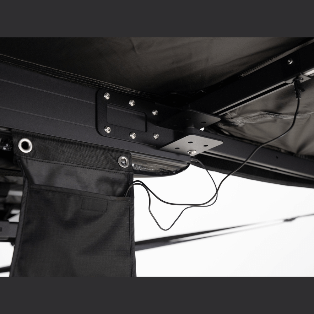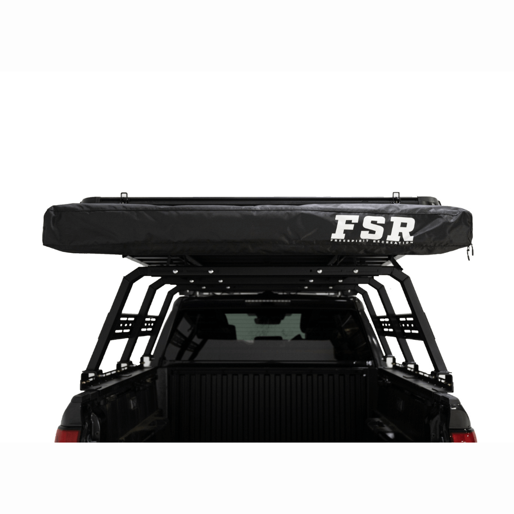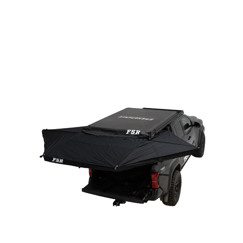 Designed specifically for use on the rear of FSR hardshell tents (Evolution XL, Aspen XL, OdysseyXL), on the side of any hardshell tent or directly mounted to any roof rack or bed rack. Cover your tailgate space from the parking lot to the campsite. A second option would be used as a smaller 180 degree awning for smaller SUVs or crossovers on the side of the vehicle.