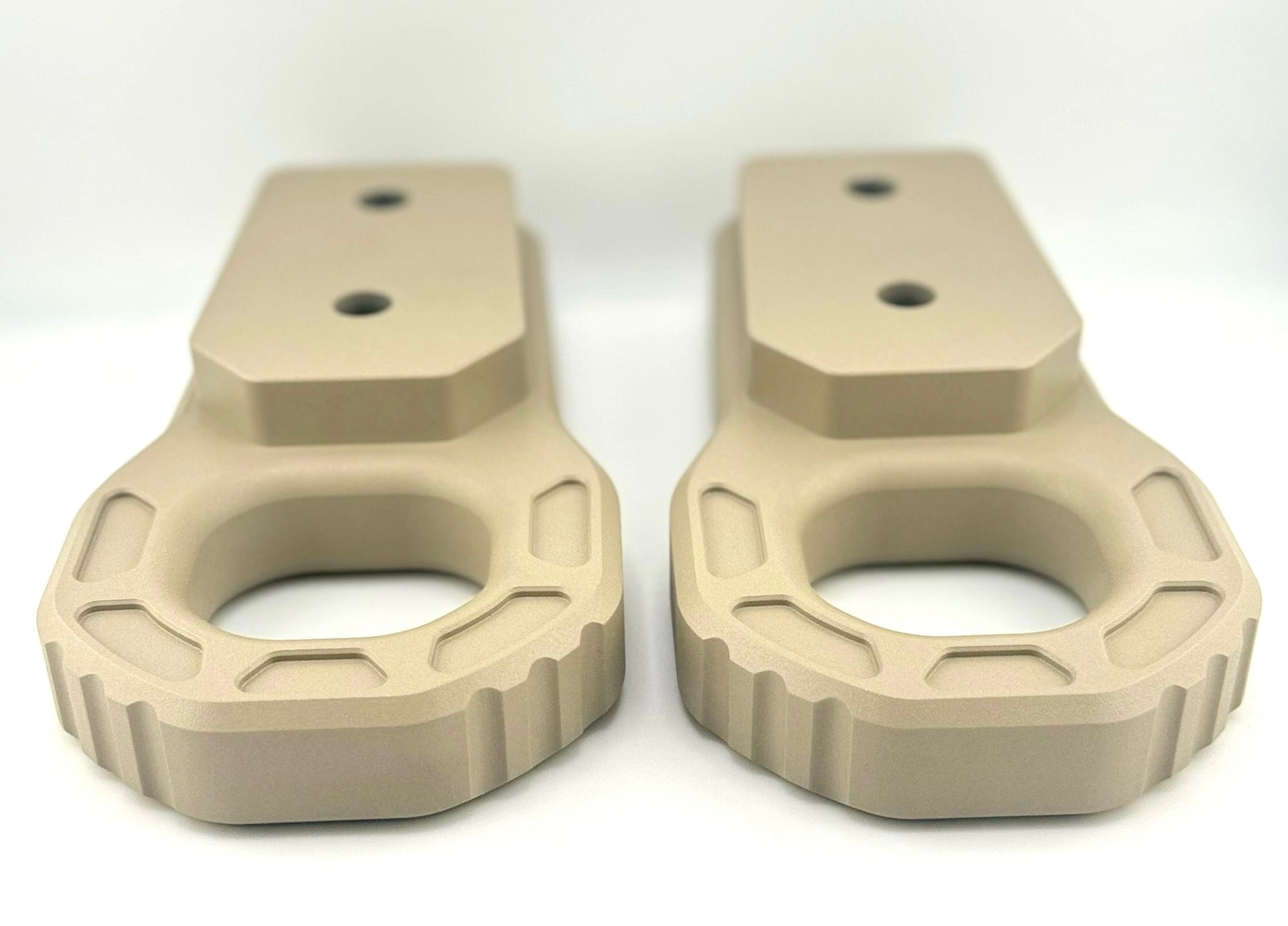 Presenting our new CNC billet machined tow hooks, specifically designed for the 2007-2021 Toyota Tundra. Crafted from high-strength 6061-T6511 aluminum. Designed to be used with a soft shackle. Finish choices of raw aluminum or multiple colors of powder coating. Includes longer bolts. These tow hooks are built to handle tough situations while adding a distinctive look to your vehicle.