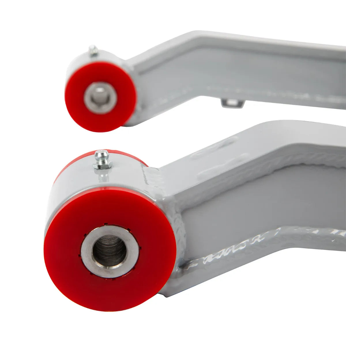 Proper alignment is crucial both on & off the pavement. Our novel alignment system does away with cams that have to be readjusted after every off-road trip and replaces them with our solid alignment tab system. Alignment tabs in 1/16” offset increments are included in this kit and different alignment tabs can be quickly changed without removing the pivot bolts.