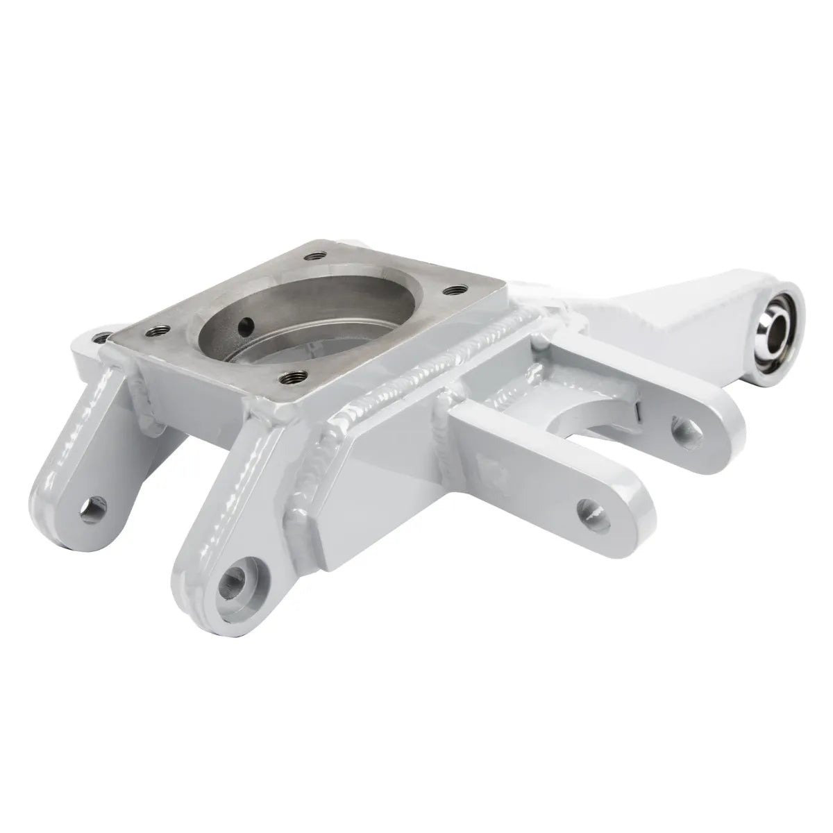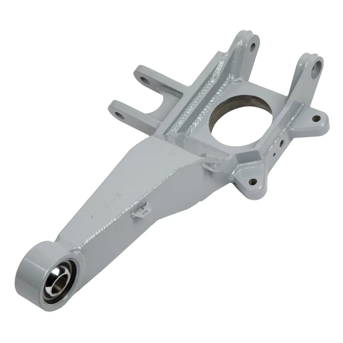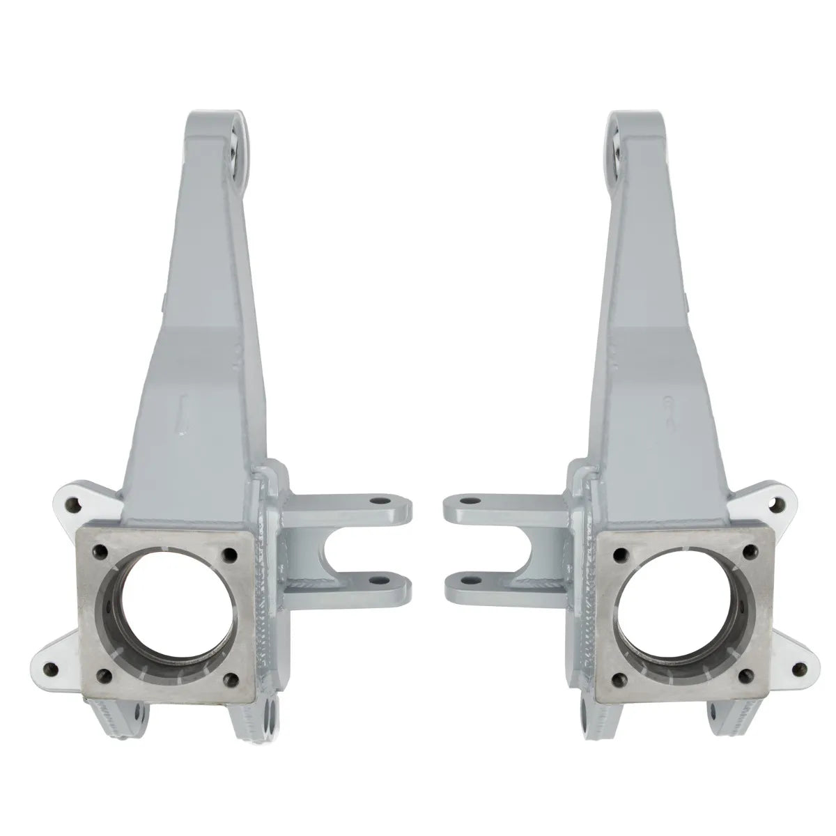 ➤ Fully boxed spindle with uniball mount. Center section made from forged SAE 1020 steel. Fully boxed & welded with ASTM A36 steel plates & 5/16” thick double-shear mounts for the steering rod end. Spindles are powder-coated for corrosion resistance.