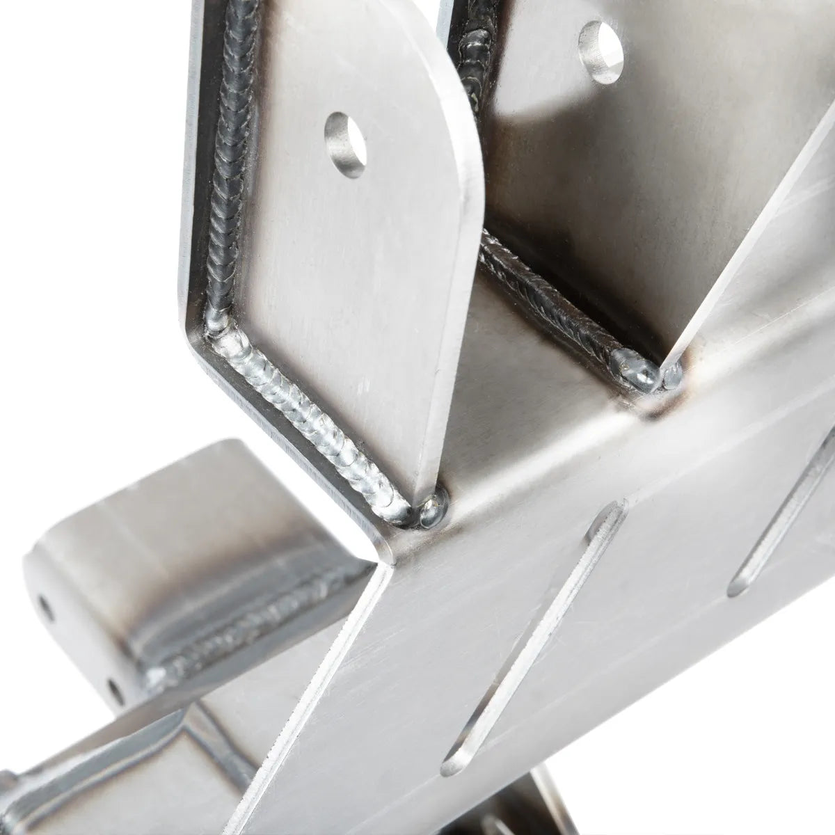 ➤ Weld-on high strength bulkhead made from 3/16” & 1/4” ASTM A36 Steel more than doubles front frame strength and provides heavy-duty A-Arm & shock mounting.