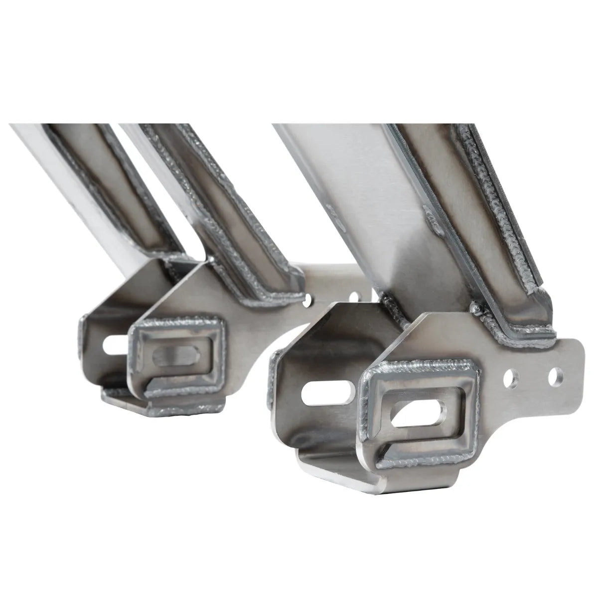 ➤ Fully boxed & welded lower long travel uniball A-arms, made from 3/16” & 1/4” ASTM A36 Steel & powder-coated for corrosion resistance. Limit strap tabs are made from 1/8” SAE 4130 chromoly steel.
