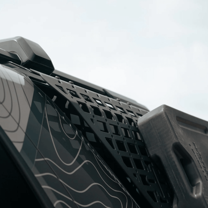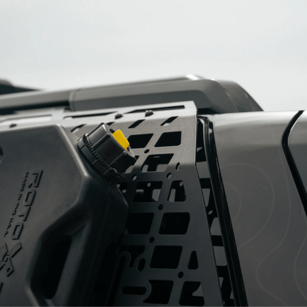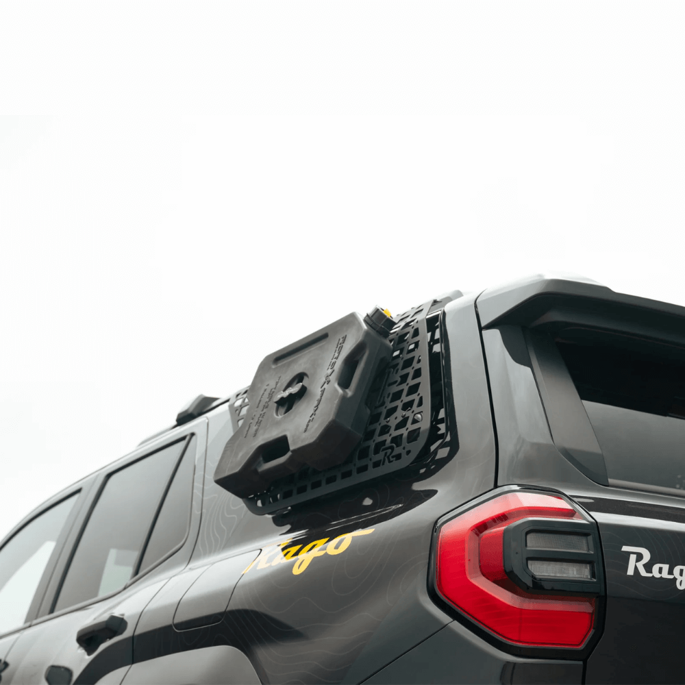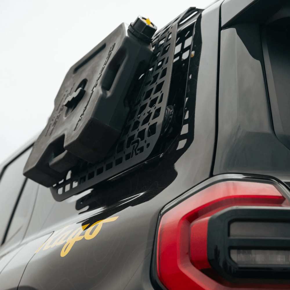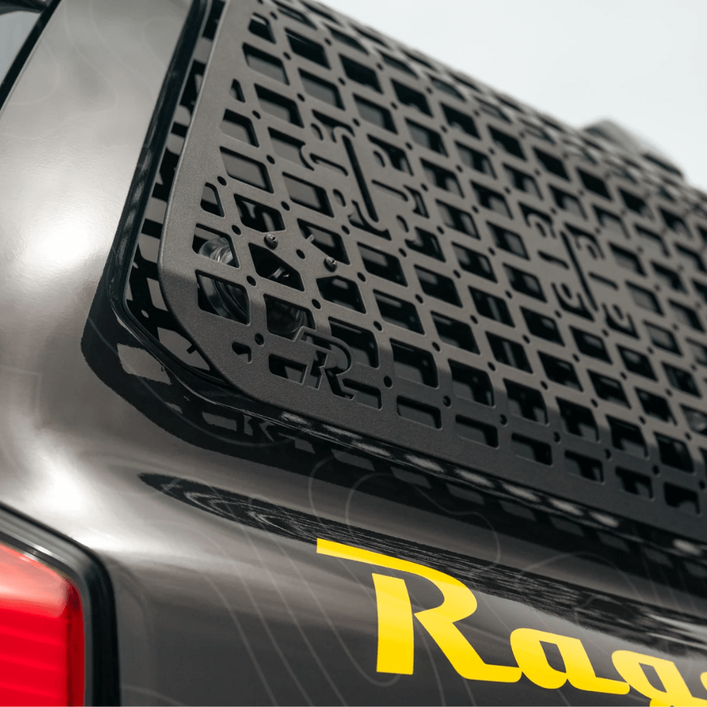 Our 6th Gen 4Runner External Rear Window Molle Panels mount to the factory roof rails or our Crossmembers to provide enhanced storage options for your overland gear and supplies. The molle pattern design is perfect for mounting equipment via bolts, straps, zip ties, Quick Fists, and other molle-compatible attachment systems. The integrated mounting points for Rotopax mounts offer the perfect spot to secure fuel or water containers, so you are properly stocked-up in case of emergency situations. The molle panels feature slots for carriage bolt mounting, so you have quick access to shovels, axes, and other necessary tools.