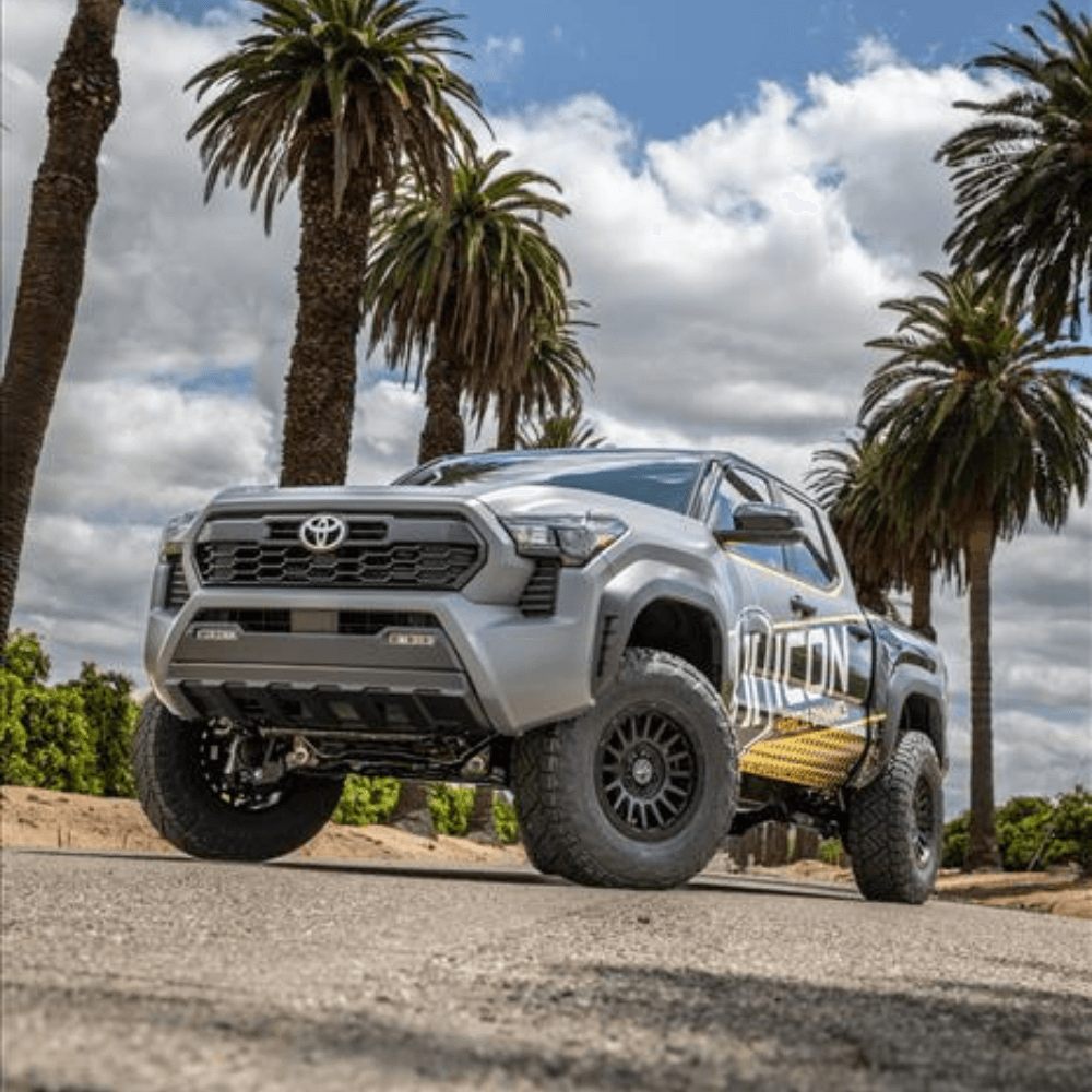This ICON billet aluminum upper control arm kit is designed to improve the overall performance of the 2024-2025 Toyota Tacoma with corrected front-end geometry, increased camber and caster adjustment, and improved suspension component clearance. Constructed of CNC machined 6061 billet aluminum utilizing a hybrid H-beam cross-section that is light-weight and resists bending forces better than tubular arms. Replacing the OE ball joint with the all-new, serviceable, and rebuildable ICON Delta Joint PRO allows for full bump and droop travel of the front suspension while eliminating bind. FK Rod End 3/4? Heim joints provide precise and smooth function throughout the range of travel while ICON?s signature double adjuster sleeve allows for on-vehicle camber and caster adjustment. Included with all components and hardware necessary for a complete install, these billet UCAs are the perfect front end upgrade for the 2024-2025 Toyota Tacoma.