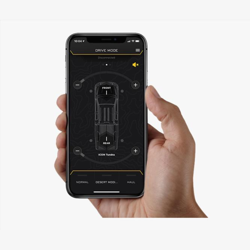 Powered by ICON Intelligent Control and proprietary ICON mobile app, the system uses information from the onboard G-force sensor and Gyroscope to perform calculations based on algorithms and user-defined settings to predict terrain and adjust shock settings via the CDEV accordingly. For piggyback and specific remote reservoir applications, ICON'S unique use of a 6061-billet aluminum manifold a few inches below the top cap of the shock creates an internal Bump Zone that when used creates an additional 20% of damping force. This additional force helps prevent harsh bottom outs and controls the suspension when compressing at high velocity.
