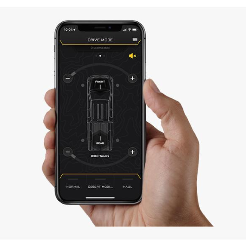 ICON's exclusive Compression Damping Electronic Valves are included for actively dialing in your suspension performance. Compression Damping Electronic Valve (CDEV) is an electronically controlled valve that meters the flow of oil to regulate the amount of damping force that is created by the shock when compressed. This infinitely variable valve can react in less than 40ms and has the ability to make extremely precise adjustments for varying terrain. CDEV’s hydraulic circuits are also custom tailored per application to create the highest resolution and dynamic range allowable for each specific vehicle. Powered by ICON Intelligent Control and proprietary ICON mobile app, the system uses information from the onboard G-force sensor and Gyroscope to perform calculations based on algorithms and user-defined settings to predict terrain and adjust shock settings via the CDEV accordingly.