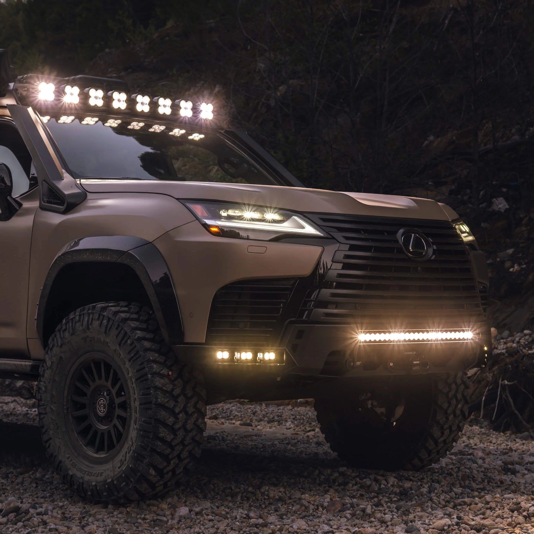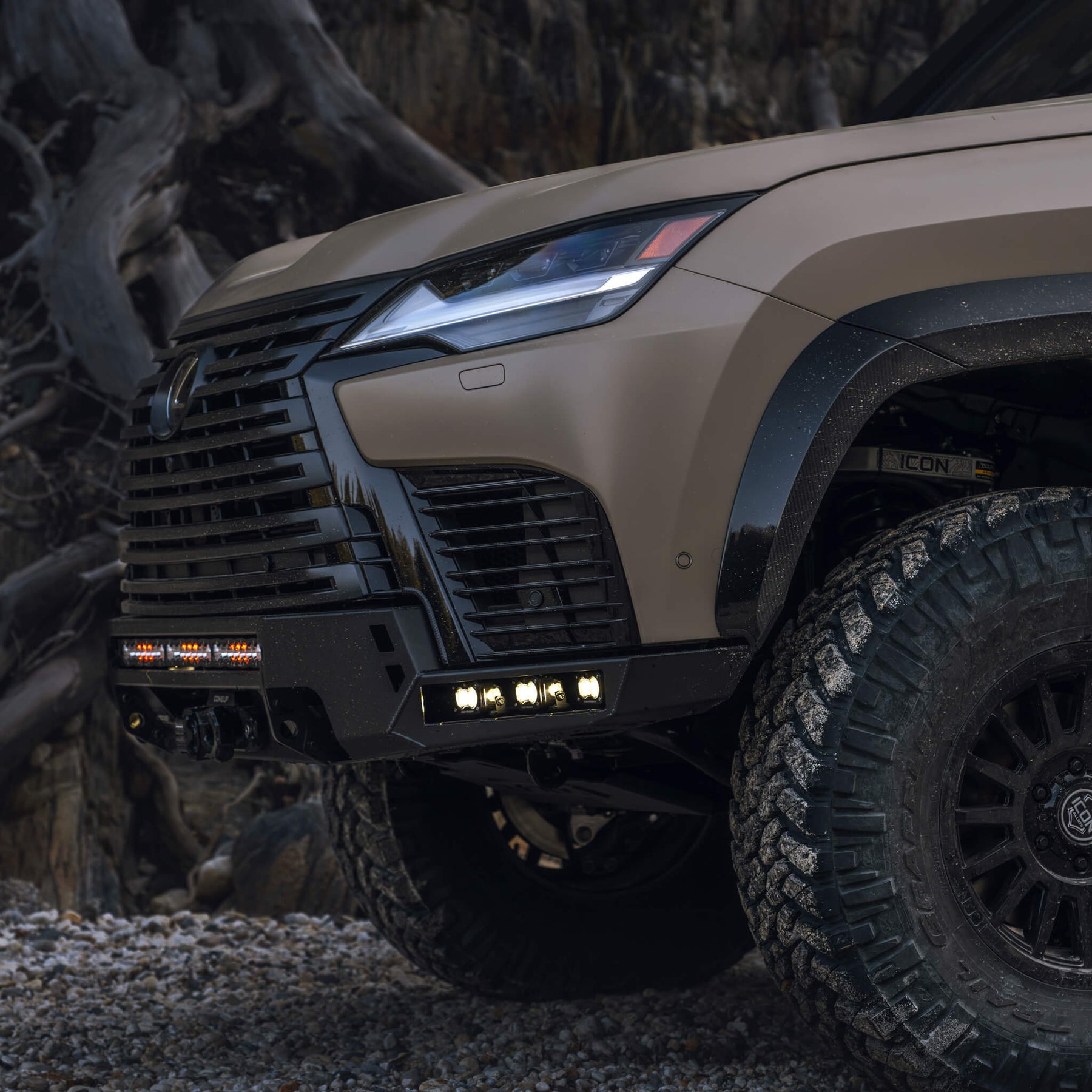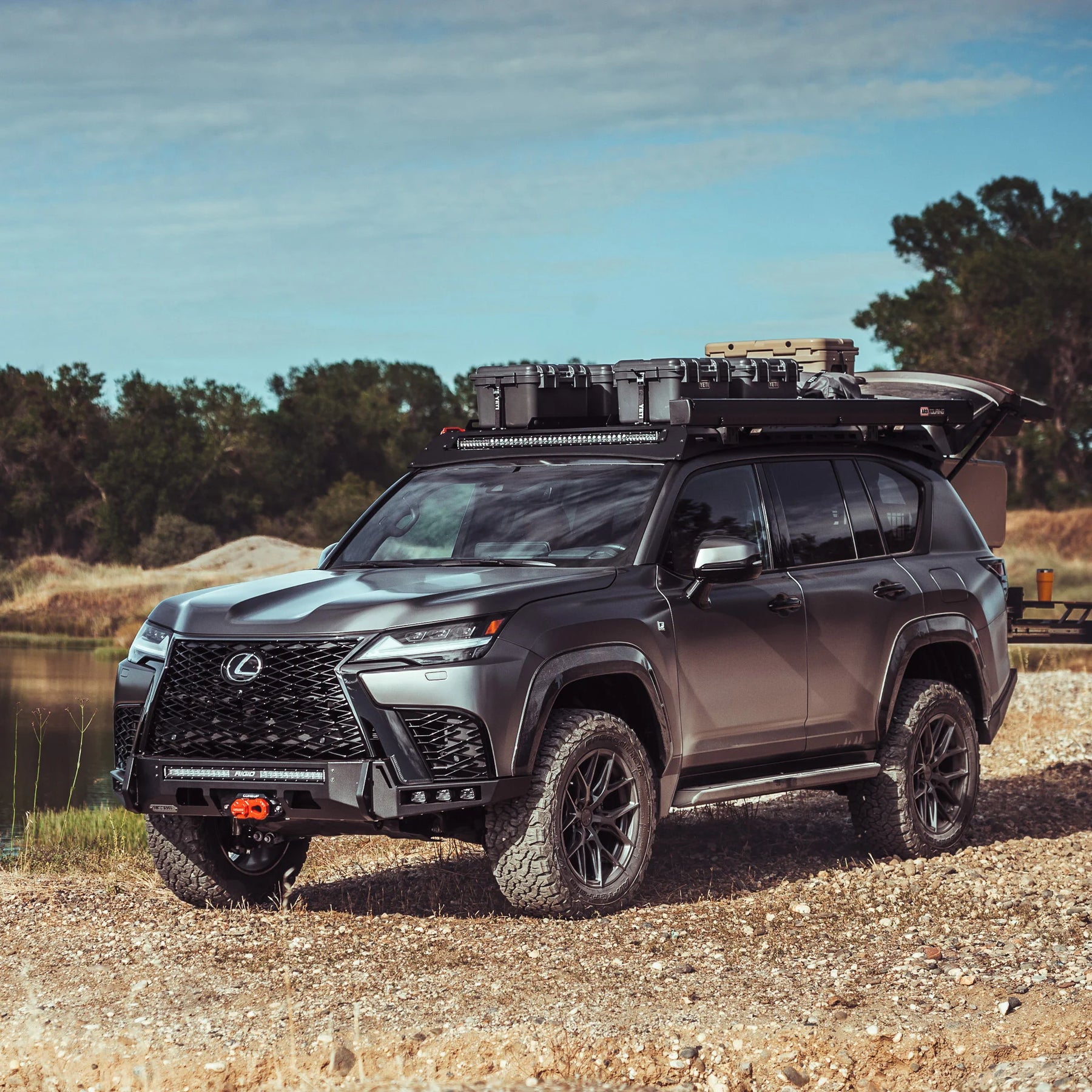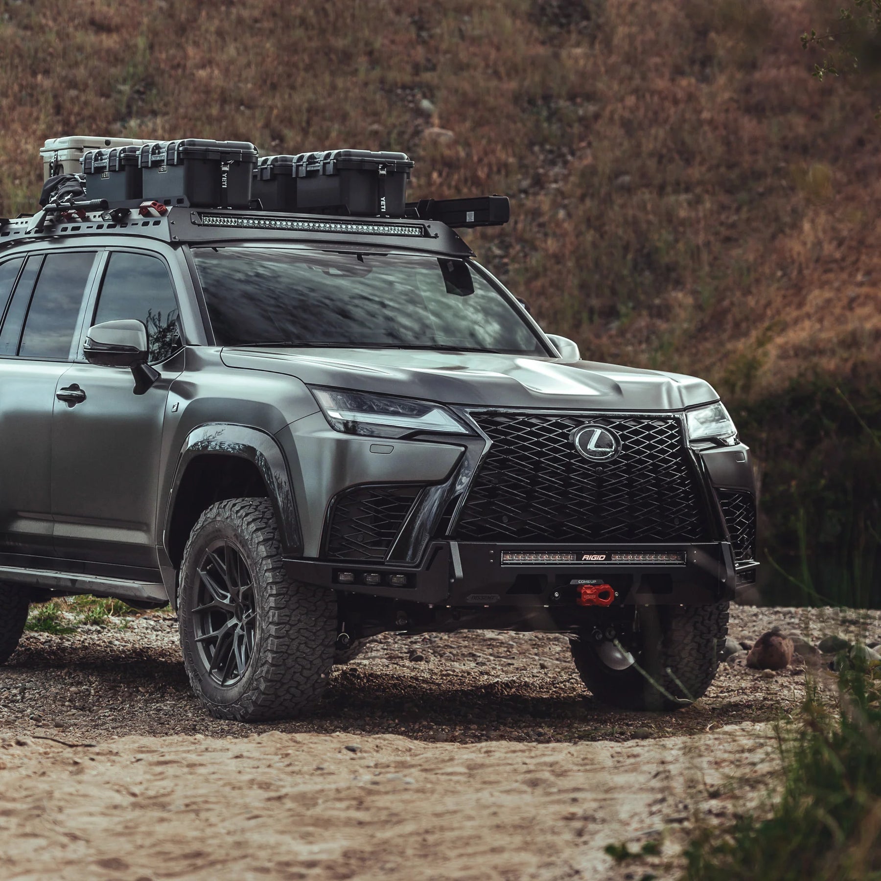 The ultimate luxury off-roader requires the ultimate winch-ready front bumper. Increase your approach angle and gain tire clearance with our LX600 Low-Profile Modular Front Winch Bumper. This is our low-profile front bumper which strikes the perfect balance of improving clearance but maintaining the signature Lexus grill.