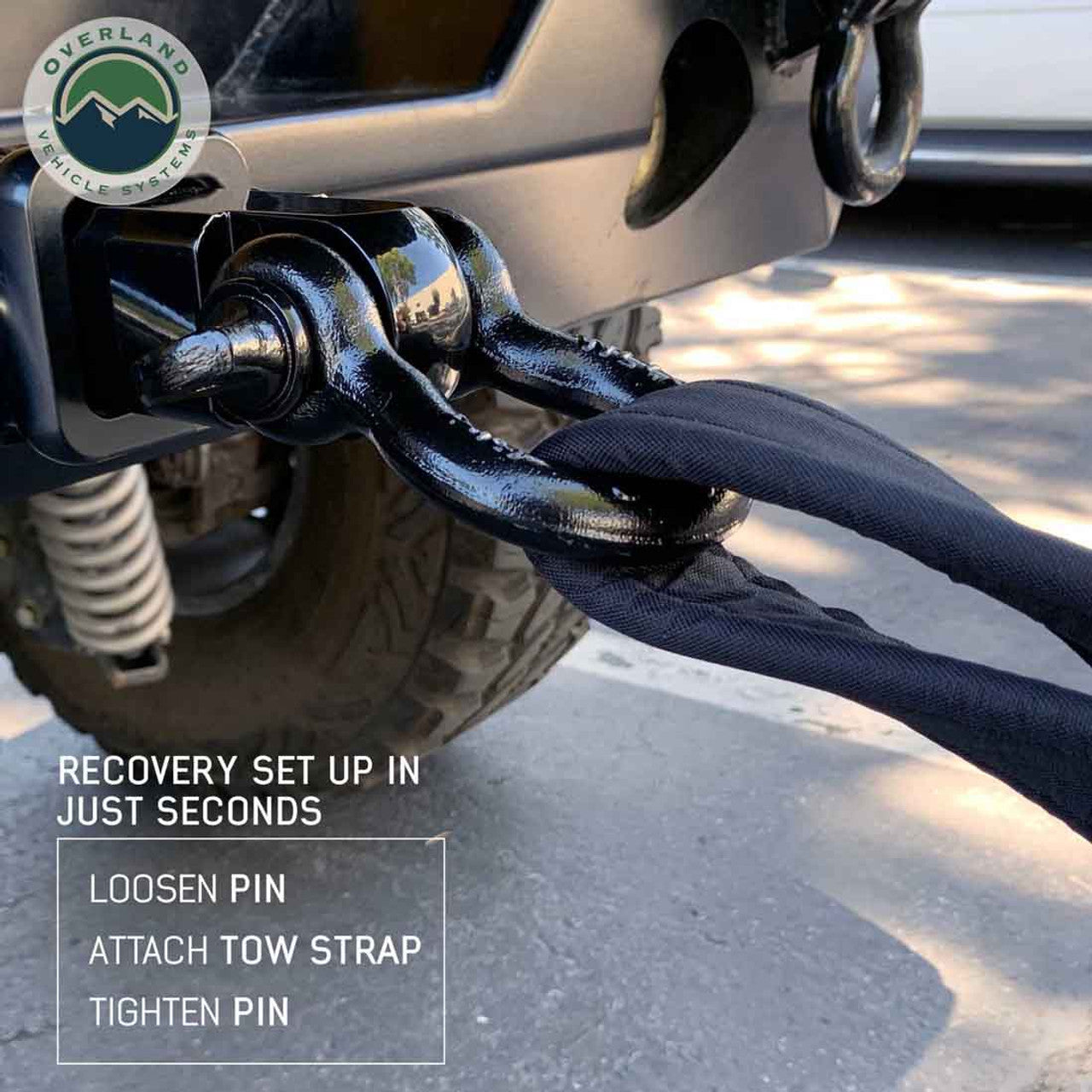 Stay safe on the trails with the Overland Vehicle Systems Receiver Mount Recovery Shackle. Receiver Hitch D-Ring: Receiver Mount Recovery Shackle 3/4" 4.75 Ton Rated Black Universal 4.75 Ton Working Strength. Receiver Mount Shackle | 3/4" 4.75 Ton | Black Universal.