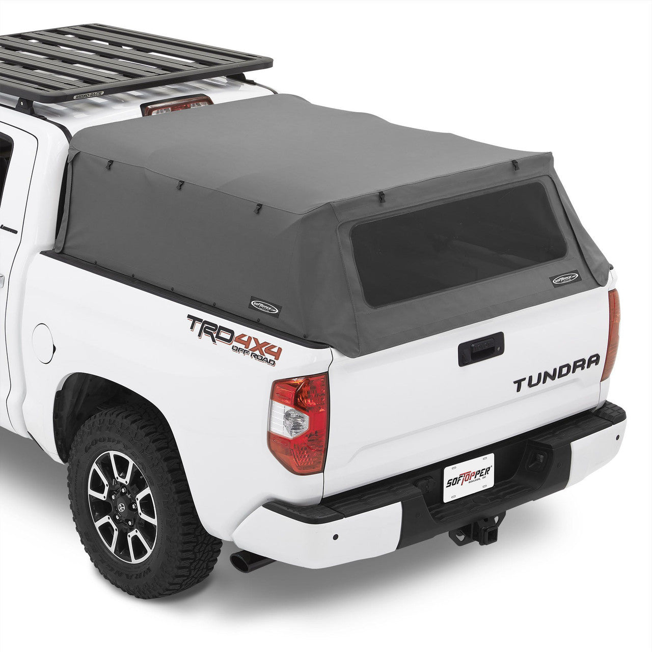 Installation is fast and drill-free — simply clamp the system in place and hit the road . Crystal-clear windows maintain visibility and roll up for ventilation, giving you comfort and function no matter the season. Twill Softoppers® come standard with tinted windows. Whether you’re hauling gear for work or loading up for a weekend off-grid, this camper shell for Toyota Tundra offers the flexibility, protection, and reliability Tundra owners demand. Proudly made in North America and backed by a comprehensive warranty, it’s built to handle whatever the trail or jobsite throws your way.