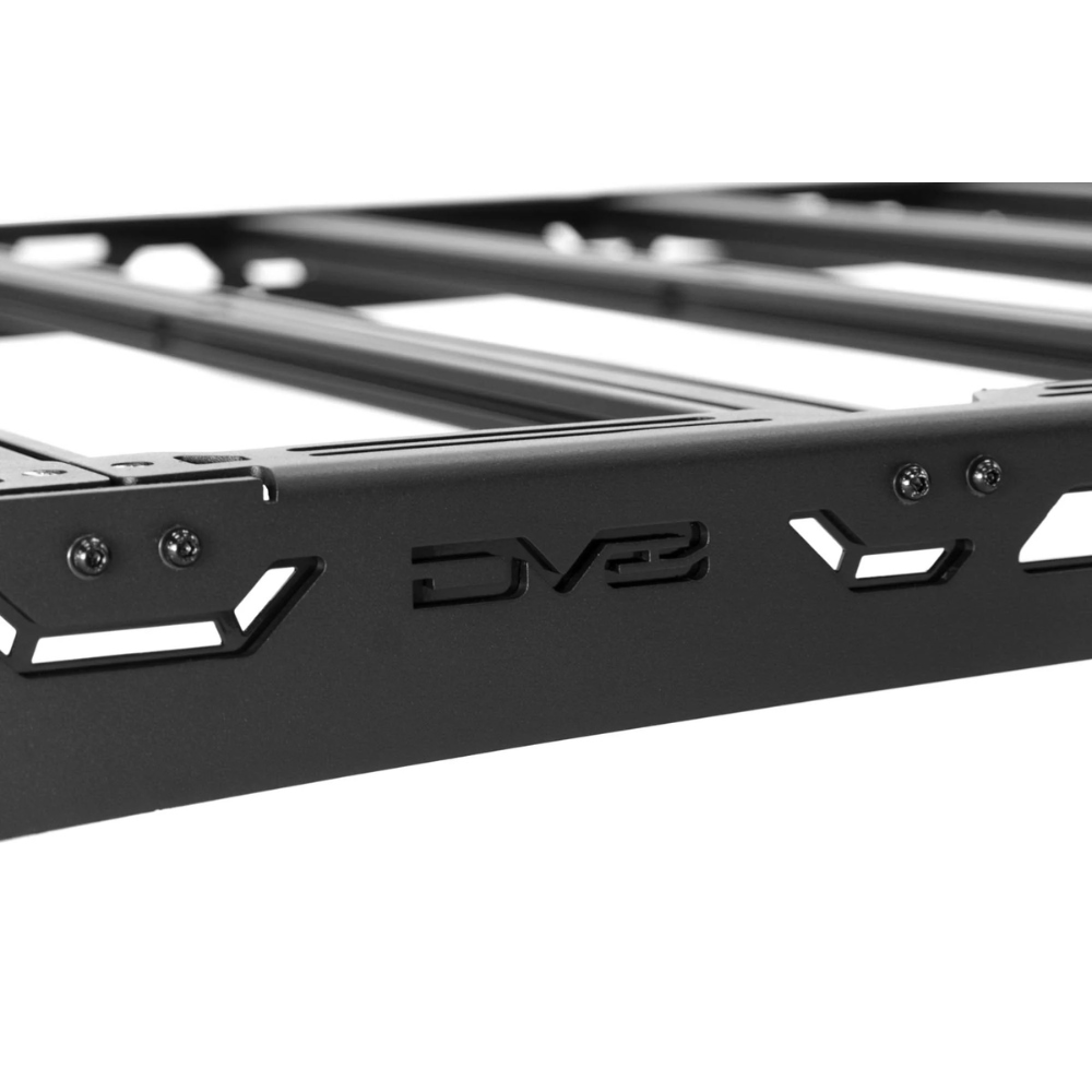 The roof rack features side slot mounts for running rock lights to function as scene lighting when at camp. The rear slot mounts allow you to run backup lights, and the rear cross bar is compatible with a 40-inch light bar for maximum visibility behind your rig. For forward-facing lighting, our rack is compatible with our Front Light Mount that can run two 20-inch single row light bars, one 40-inch single row light bar, or ten 3-inch pod lights. The roof rack is fully bolt-on for a straightforward install process, and it retains the factory sunroof and antenna. Our rack features a lightweight and durable aluminum design that is finished in a micro-texture black powder coat with gloss black steel accent panels for a sleek styling. Whether you need to get your mountain bike to the trail head or are seeking maximum storage space for your next overland trip, our roof rack is the perfect upgrade to your off-road build.