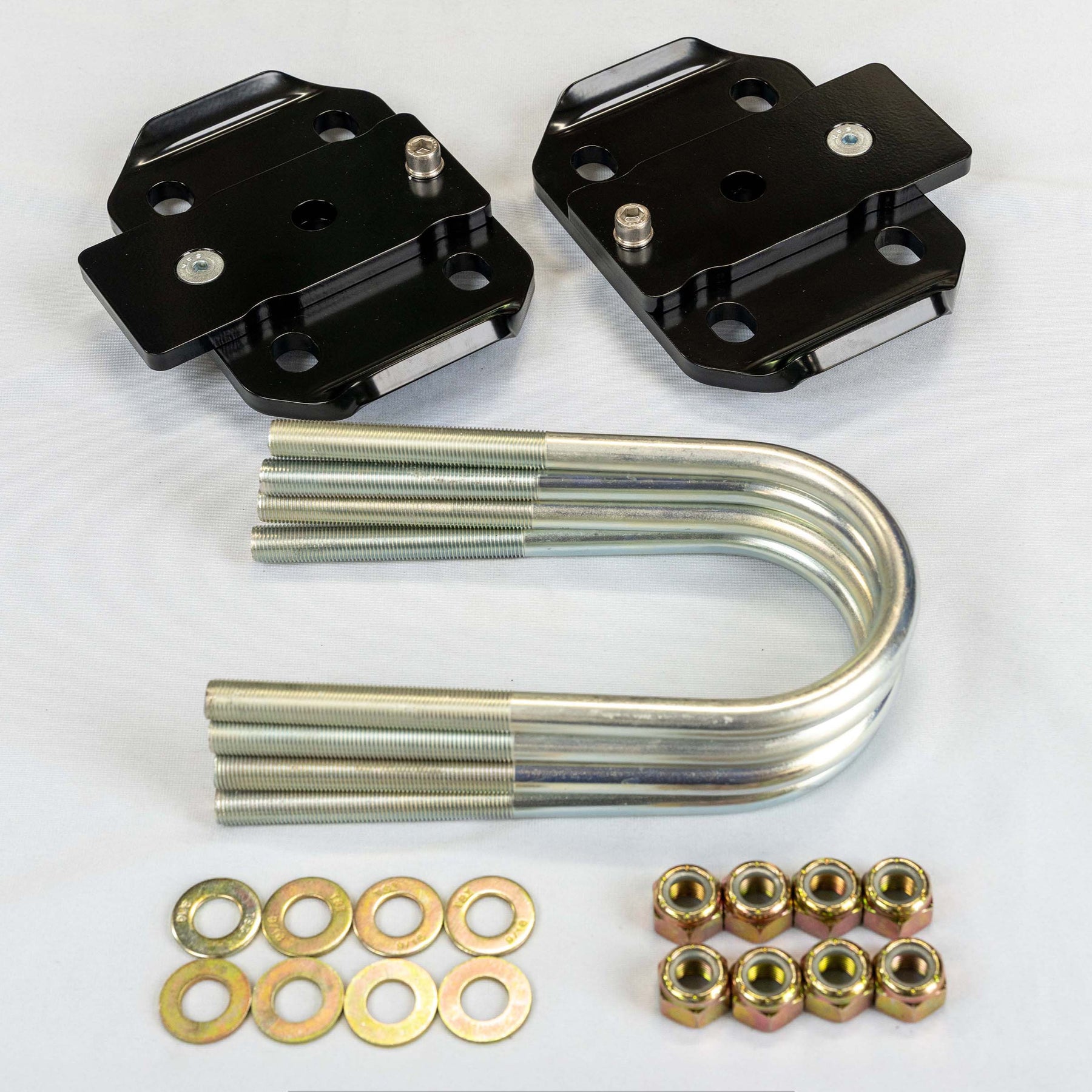 ✔ (2) HD powder coated U-bolt plates made from high strength steel (30% stronger than mild/A36)