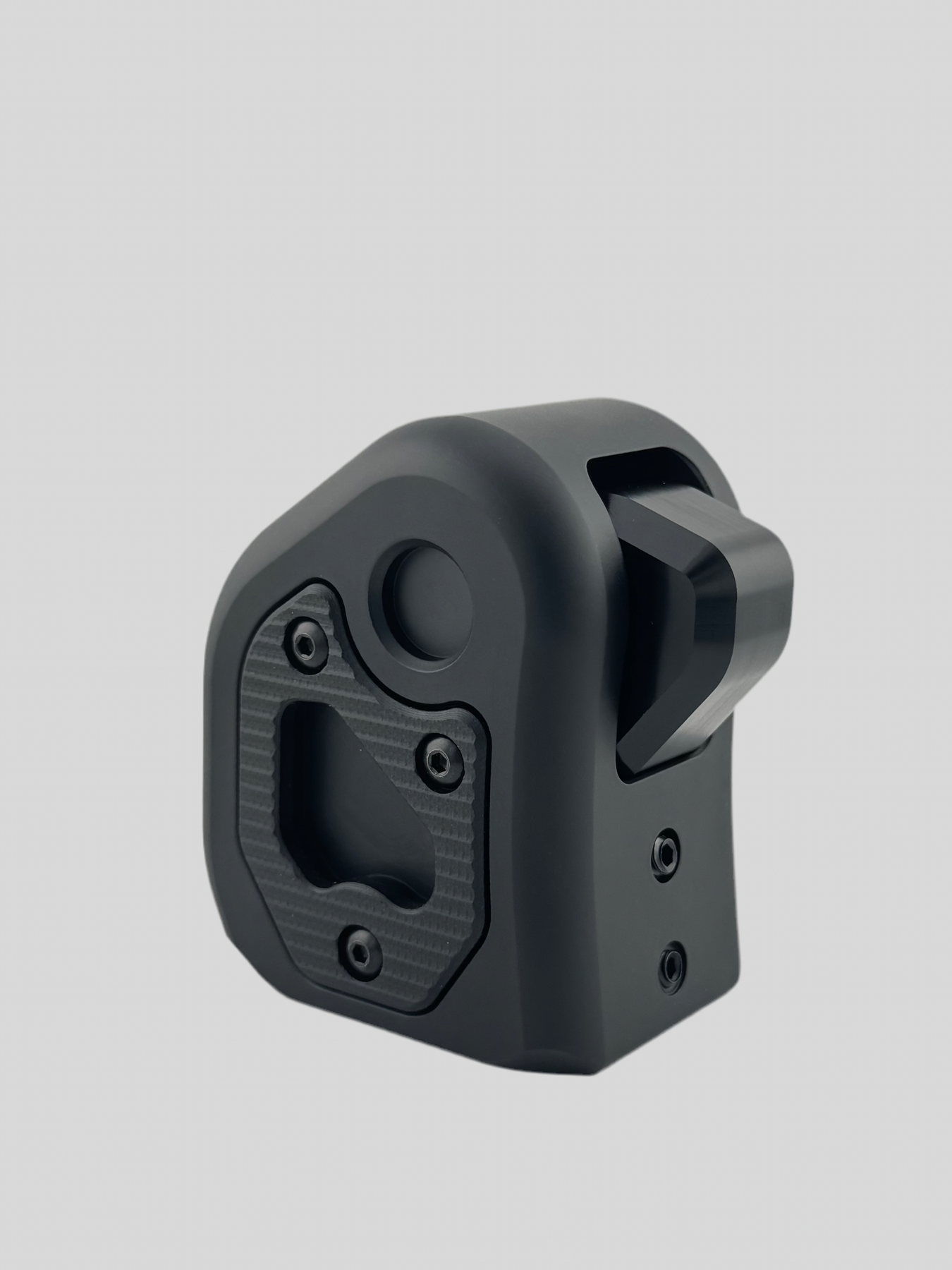 Made in the USA for the 4th Gen Tacoma. CNC machined 6061 aluminum body that is Cerakoted in a flat black. The side scales are CNC machined out of G10 (knife handle material) available in multiple colors, and interchangeable.
