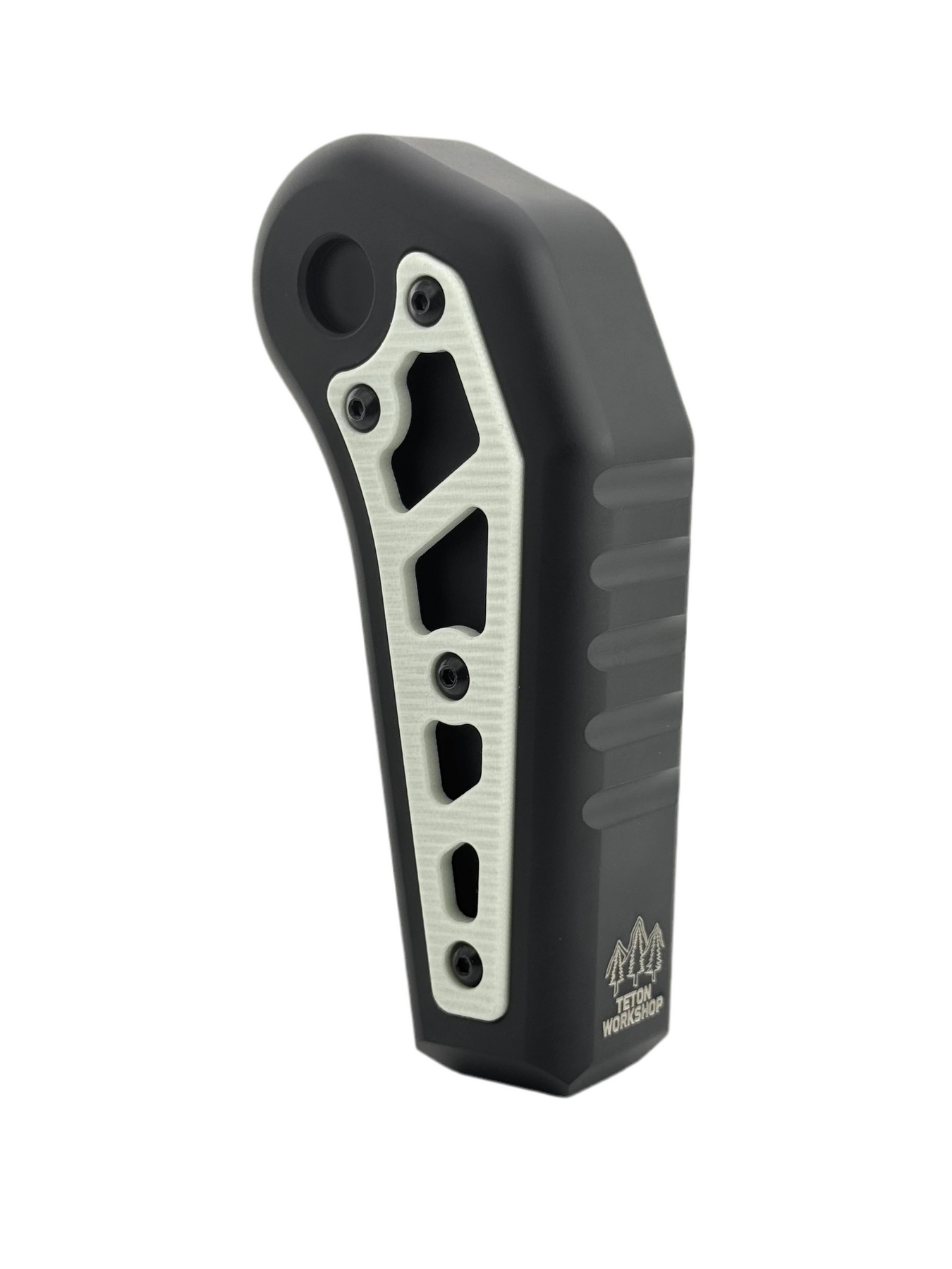 Proudly made in the USA, design uses a combination of a Cerakoted matte black aluminum main body, and interchangeable colored G10 scales. Both of which are CNC machined in our small shop located in Idaho Falls, Idaho. With jimpings added to the back of the shifter for added traction. Easy installation with everything required for install included.
