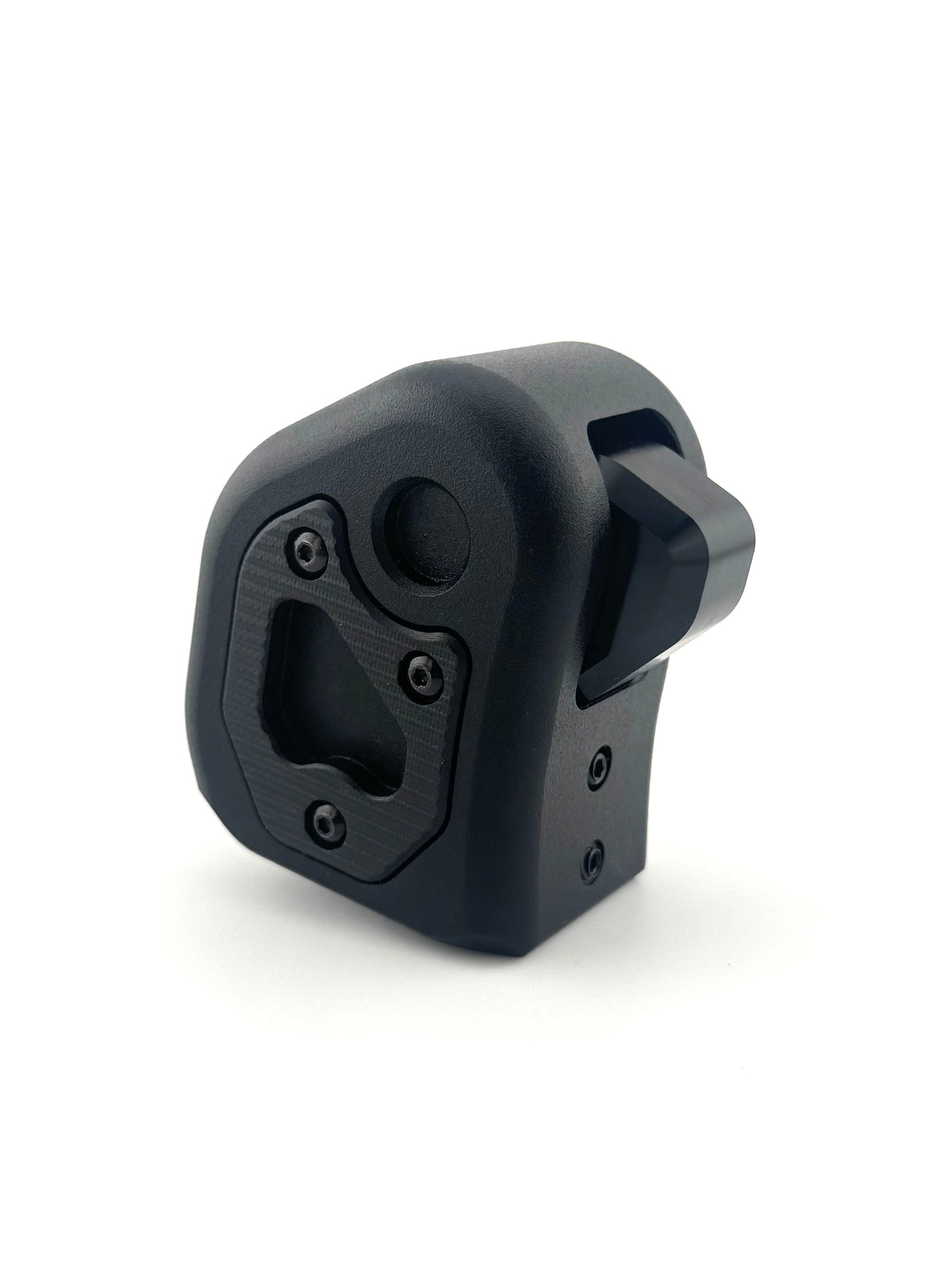 Made in the USA for the 4th Gen Tacoma and 3rd Gen Tundra. CNC machined 6061 aluminum body that is powder coated in a black texture. The side scales are CNC machined out of G10 (knife handle material) available in multiple colors, and interchangeable.