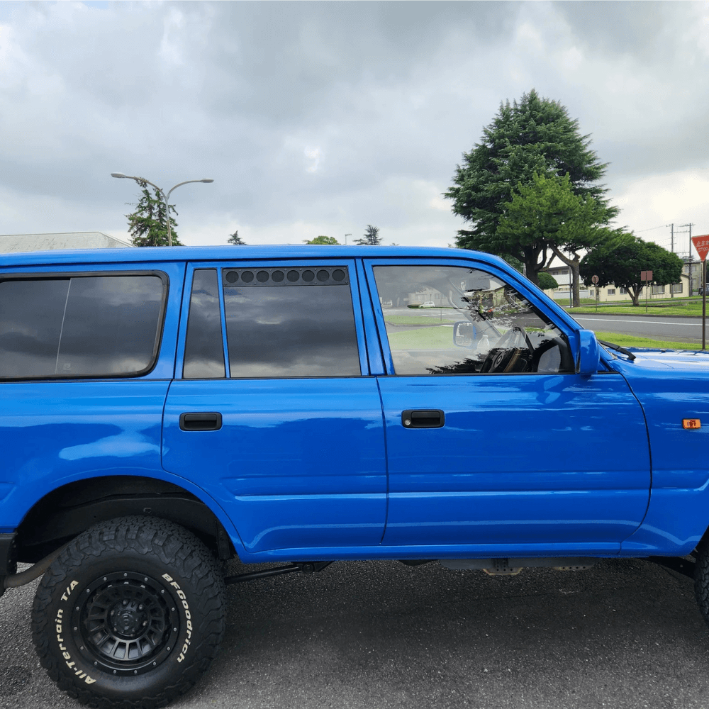 These window vents for your 1990-1997 Toyota Land Cruiser 80 Series can be used in several ways. Camping to prevent insects from entering the cabin with our mesh screen insert, daily driving to eliminate wind turbulence or if you have pets in the back seat, or stand out from the others at a show.
