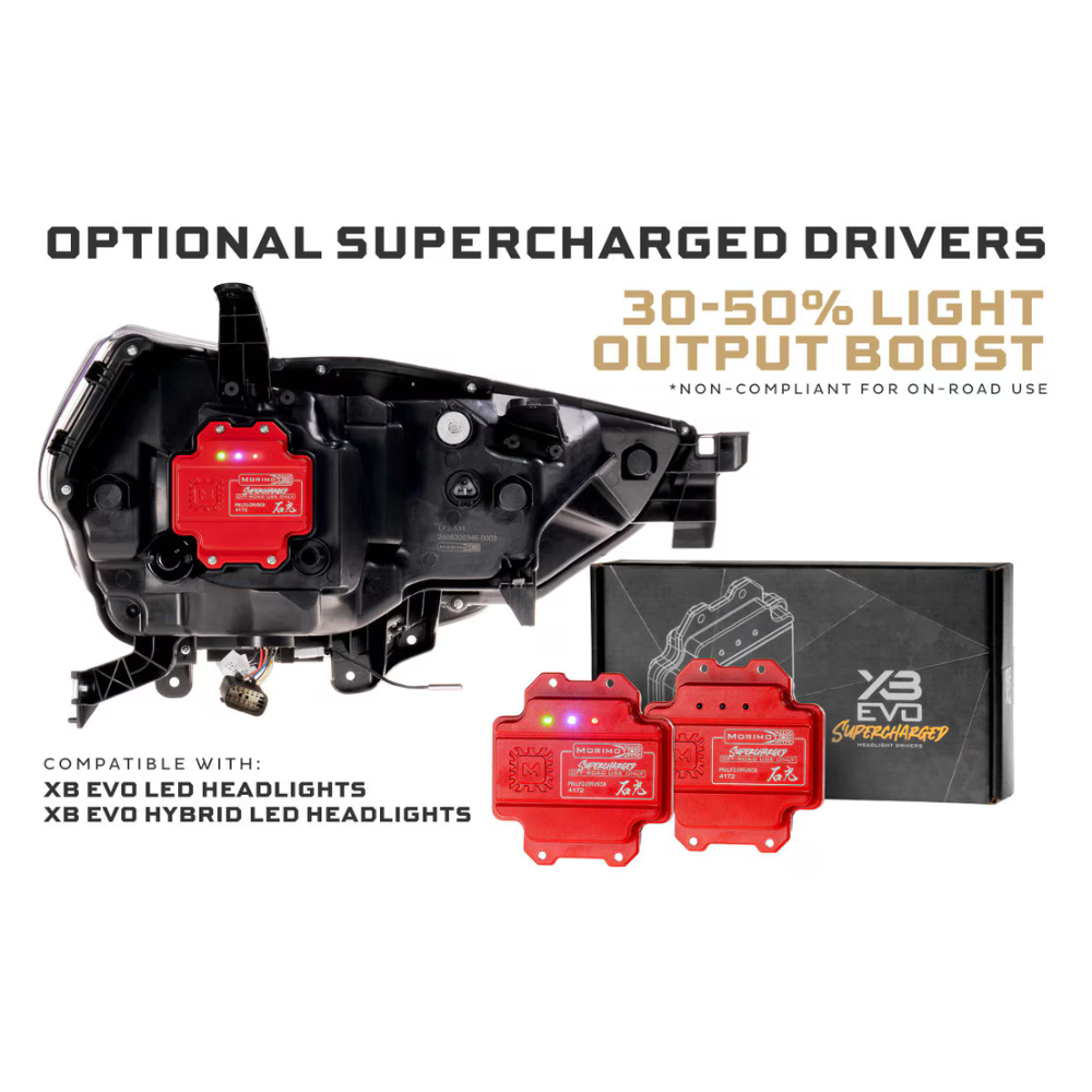 On and Off Road: DOT Compliant for public roads in the USA in standard form, with an optional Supercharged LED driver to boost intensity by 30%, making them the brightest option for 4Runner owners who want to maximize output for off-road use.