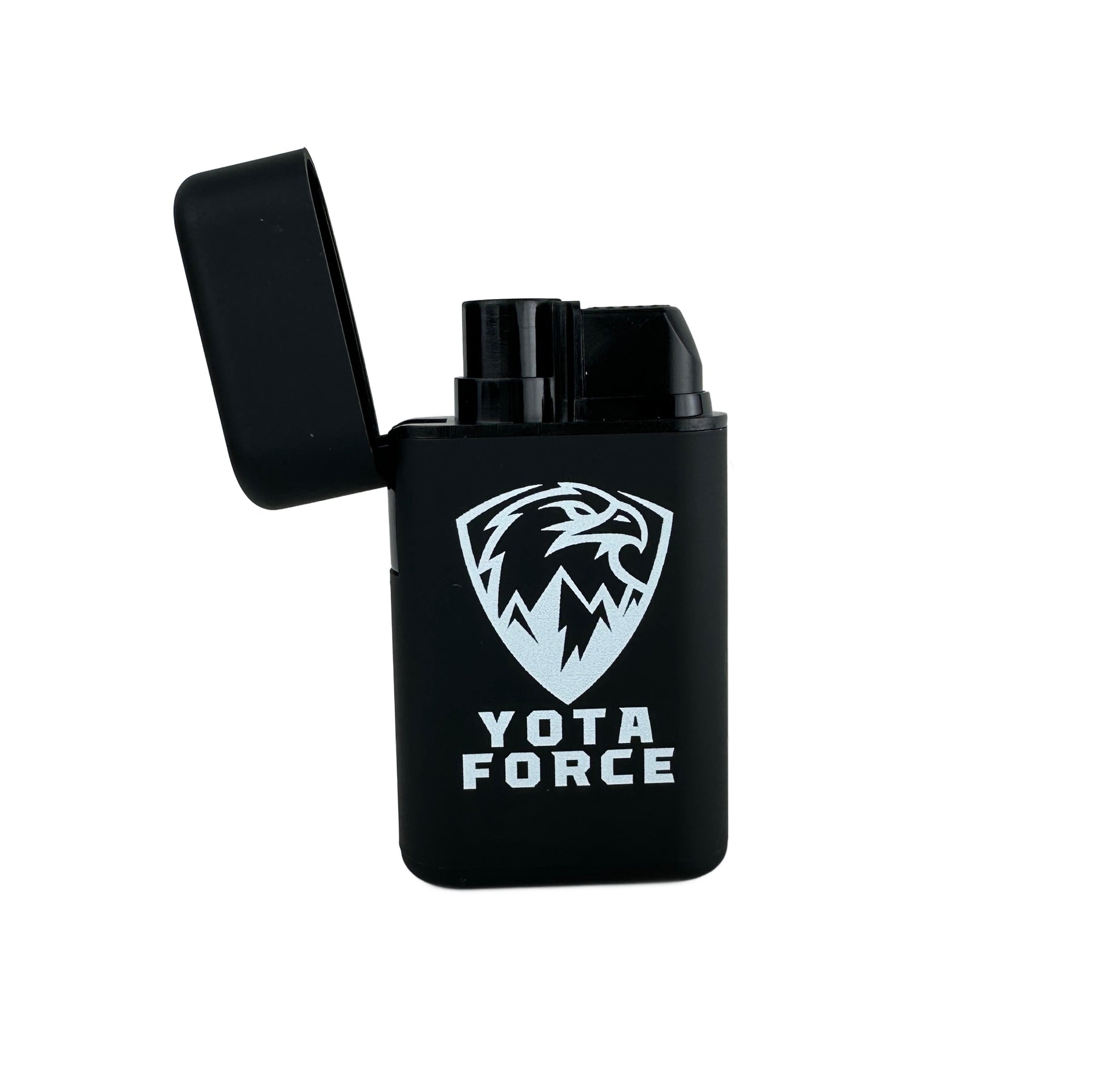 Enjoy the power and reliability of our YOTA FORCE Pocket Lighter equipped with a torch flame, and flip-top cover.